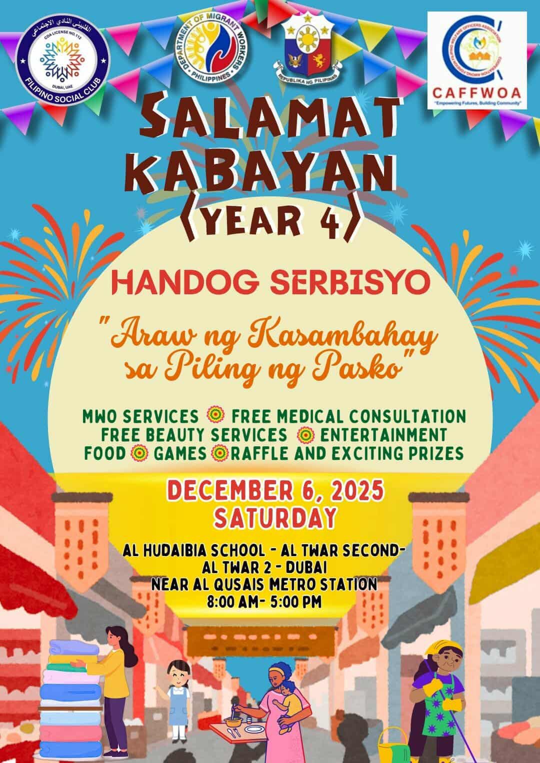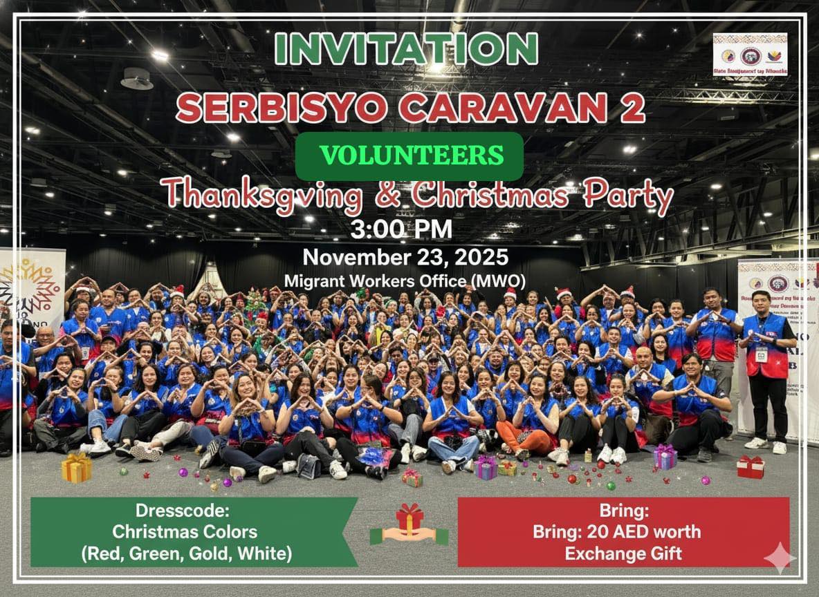 Migrant Worker's Office (MWO), DubaiOur Serbisyo Caravan 2 FilSoc Volunteers Thanksgiving & Christmas Party is happening soon!ย Date: November 23, 2025ย Time: 3:00 PM onwardsCome in your best Christmas-colored attire and letโs celebrate the spirit of [...]