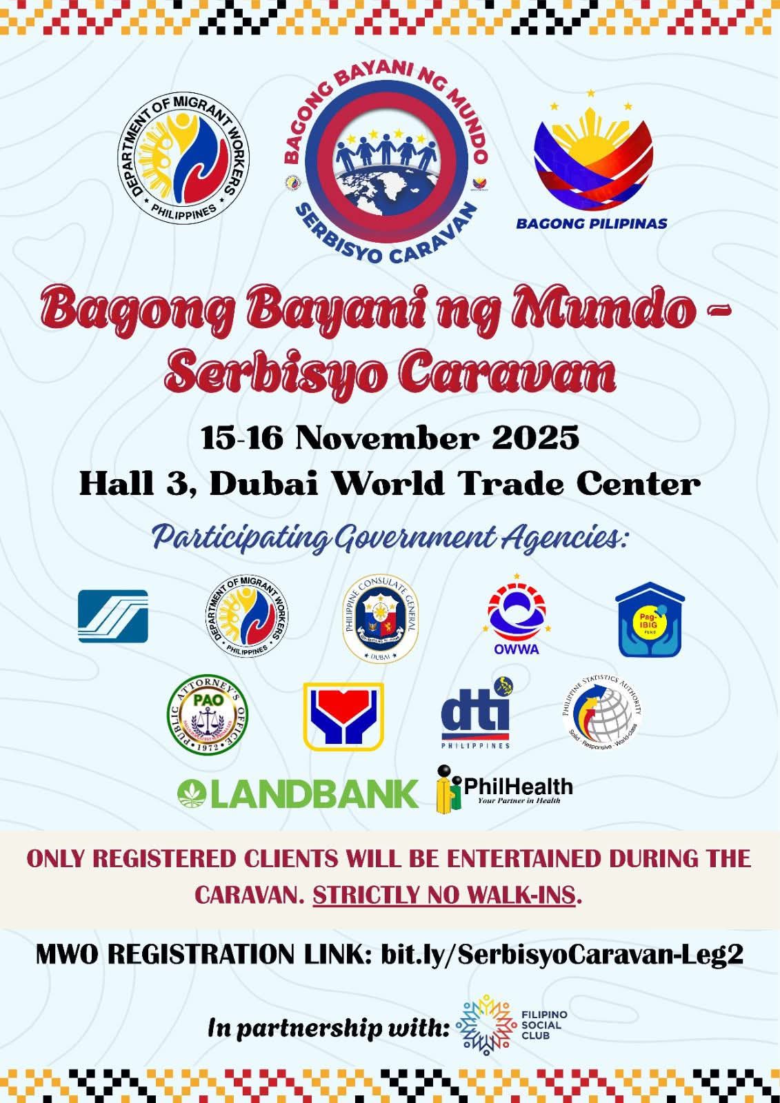 Dubai World Trade CentreAs an offshoot of the first inter-agency Overseas Filipino Workers (OFW) Serbisyo Caravan conducted in Dubai, United Arab Emirates, on 03 August 2025, may we inform the public that the [...]